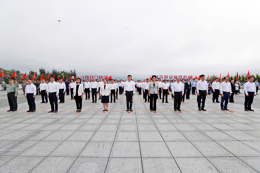 全场肃立,向为中国人民解放事业和共和国建设事业英勇献身的烈士默哀。州政府网 周兴云 摄