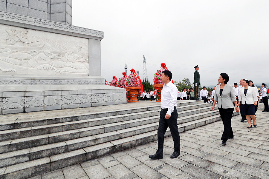 州领导与各界代表缓步绕行,瞻仰烈士纪念碑。州政府网 周兴云 摄